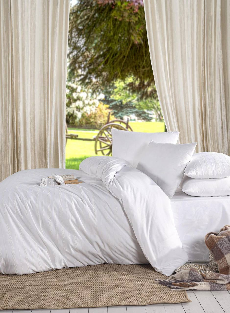 Adaugă un plus de eleganță și confort dormitorului tău cu această lenjerie de pat din damasc premium, creată pentru a oferi o experiență luxoasă la fiecare noapte de somn. Realizată dintr-un material de calitate superioară, această lenjerie se remarcă prin finețea țesăturii și prin designul său subtil, cu dungi discrete care adaugă un aer sofisticat oricărui dormitor.
