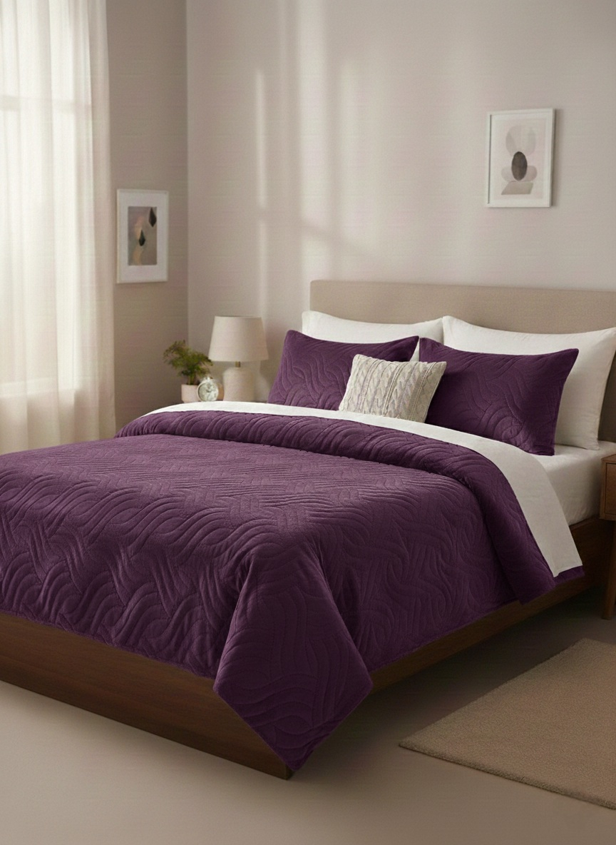 Cuvertura de pat + 2 fete de perne confectionate din catifea premium. Cuverturile de pat sunt potrivite indiferent de anotimp. Totodata, ele adauga mai multa caldura dar si bun gust dormitorului tau.