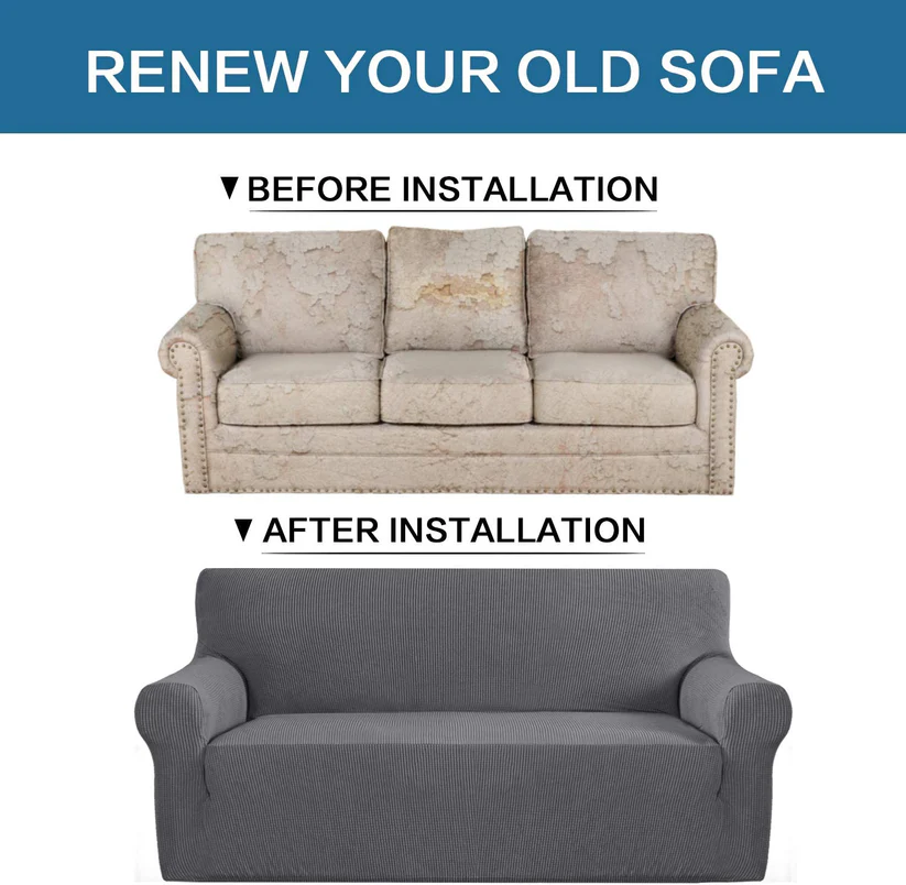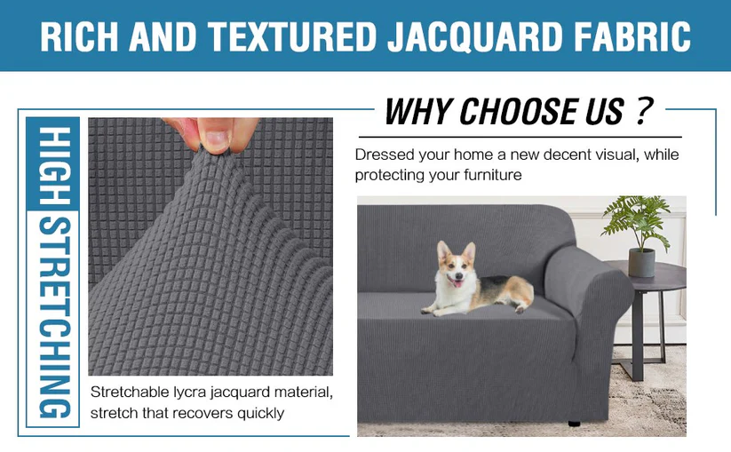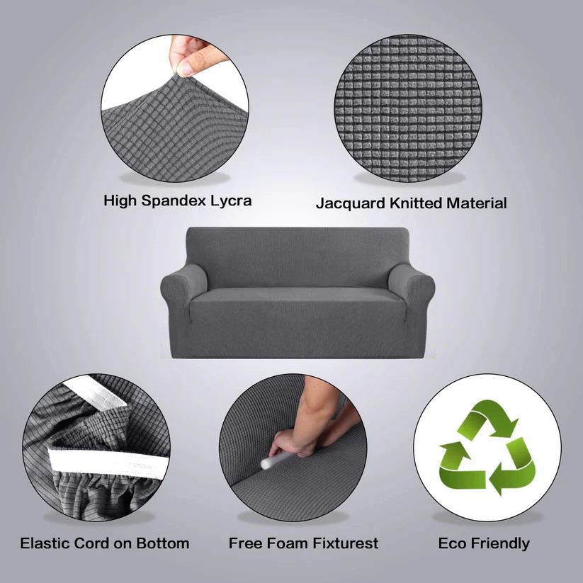 Elasticitate superioară: Husa are un design în relief, confecționat din 96% poliester și 4% spandex, ce oferă o prindere perfectă pe canapele de aproximativ 135 × 175 cm