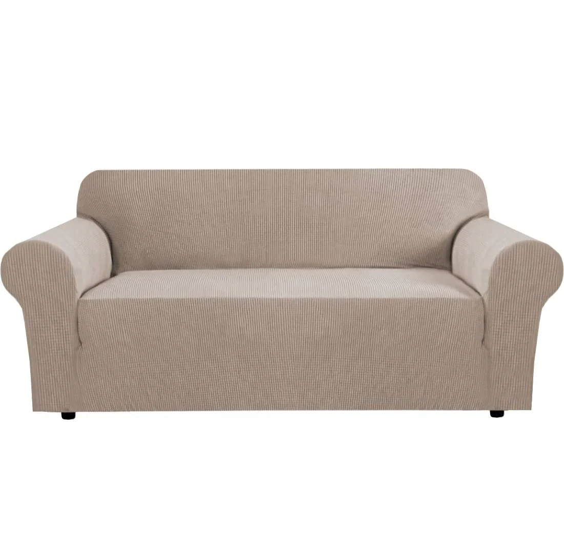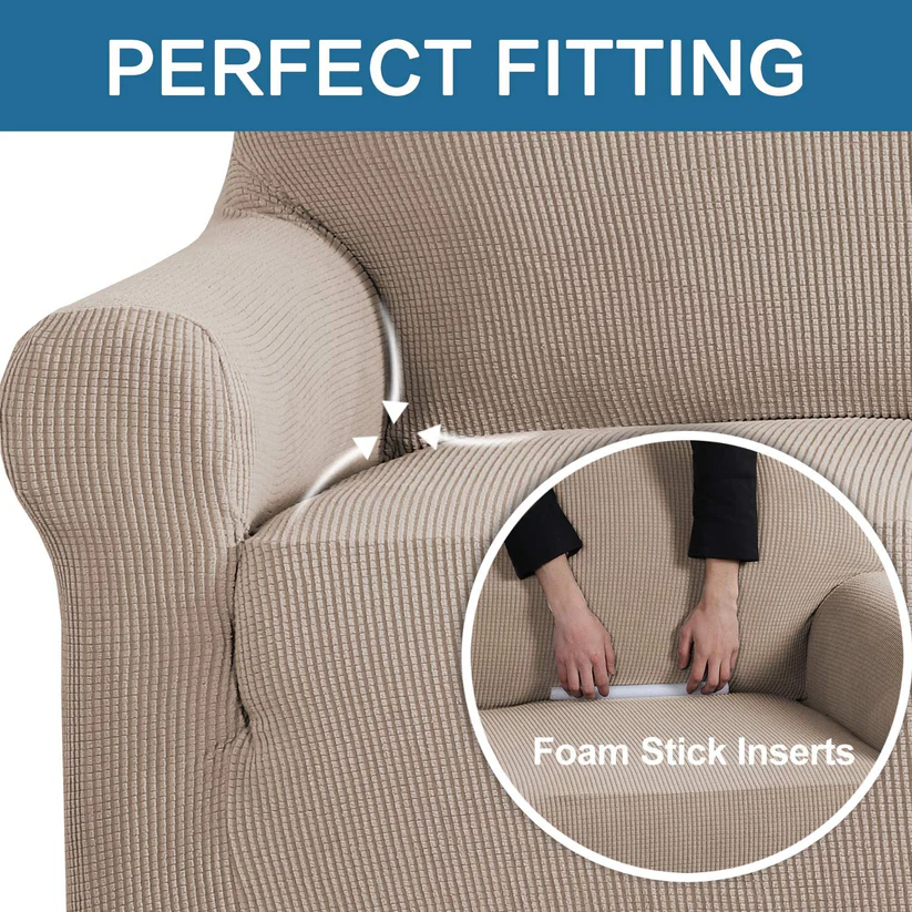 • Elasticitate superioară: Husa are un design în relief, confecționat din 96% poliester și 4% spandex, ce oferă o prindere perfectă pe canapele de aproximativ 180 × 225 cm până la 185 × 230 cm