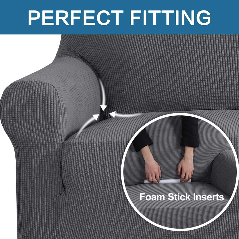 Elasticitate superioară: Husa are un design în relief, confecționat din 96% poliester și 4% spandex, ce oferă o prindere perfectă pe canapele de aproximativ 180 × 225 cm până la 185 × 230 cm