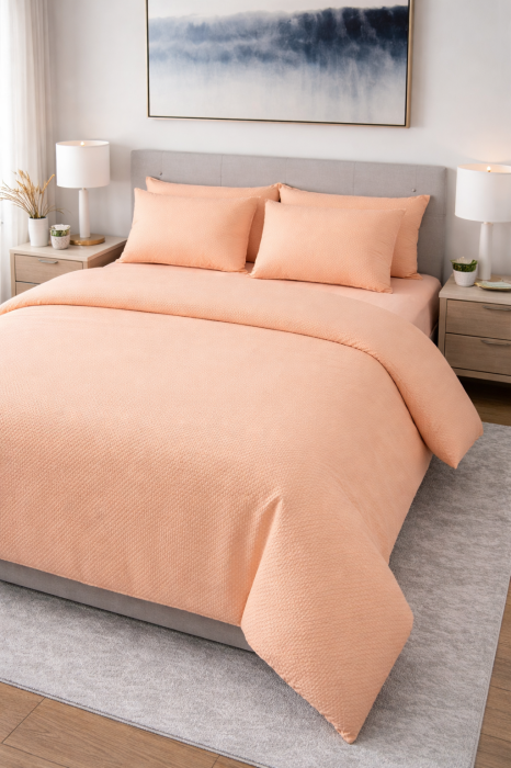 Lenjerie pat dublu Finet 4 piese 200x220 -Moale si placuta la atingere- Culoare Bej