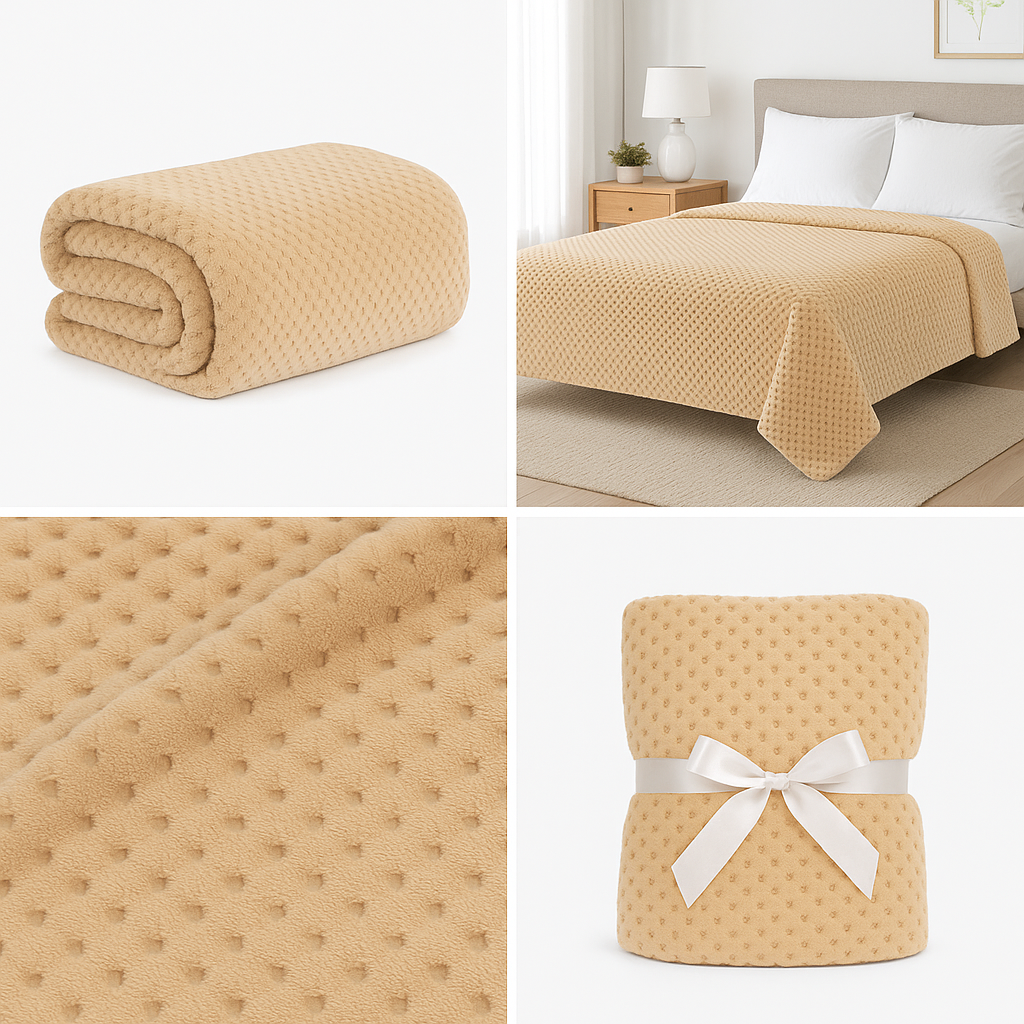 Îmbrățișează căldura și confortul cu Pătura Popcorn din microfibră coral fleece tip jacquard. Combină un interior de poliester 100% cu un exterior moale și respirabil — perfectă pentru sezonul rece. Antialergică și elegantă, această pătură de dimensiuni generoase (200×220 cm) este ideala pentru dormitor sau living, iar variantele de culori (crem, verde, albastru, gri) se potrivesc oricărui decor.