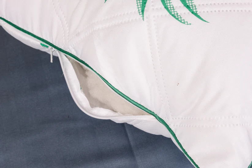 Interiorul pernei este umplut cu puf siliconizat antialergic.