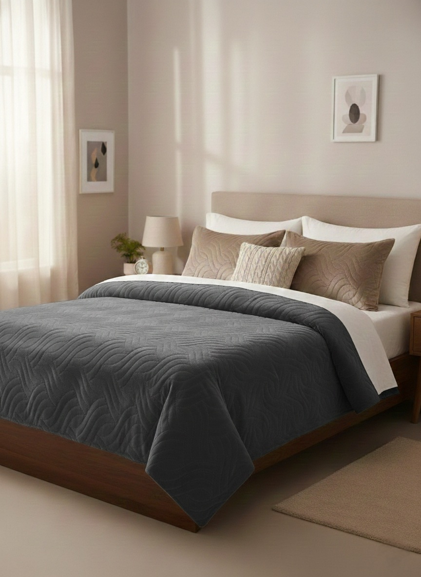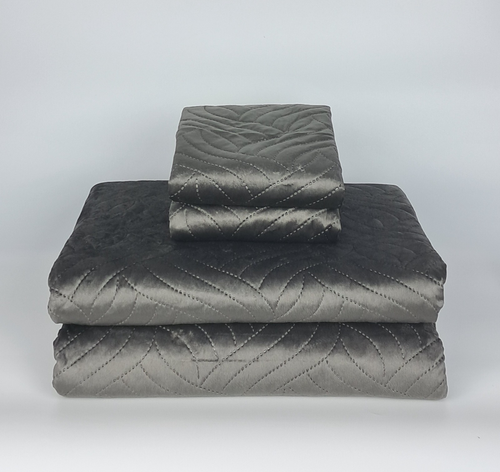 Cuvertura de pat + 2 fete de perne confectionate din catifea premium. Cuverturile de pat sunt potrivite indiferent de anotimp. Totodata, ele adauga mai multa caldura dar si bun gust dormitorului tau.